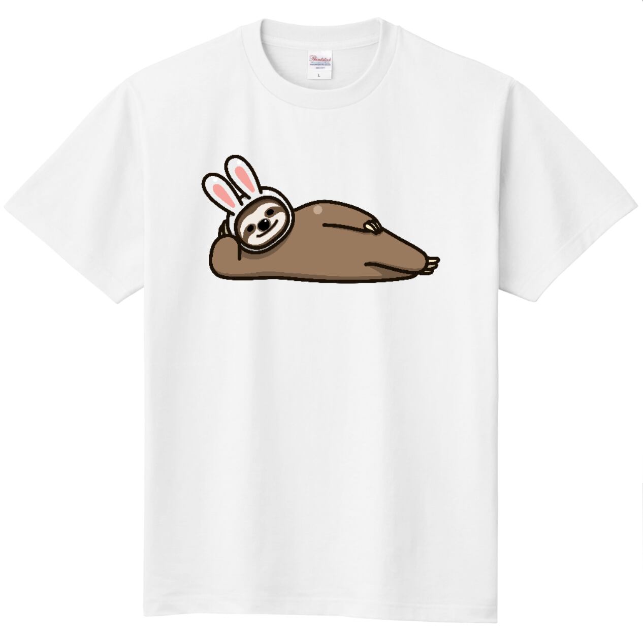 ウサギになりたいナマケモノのイラストが入った、極めてキュートなTシャツです。